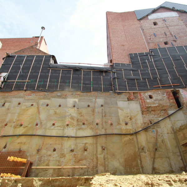 Pour permettre la réalisation d’espaces commerciaux et de kots d’étudiants, il a été nécessaire de créer une fouille dont une moitié a été excavée jusqu’à une profondeur de 5 m et l’autre jusqu’à une profondeur de 8,50 m.